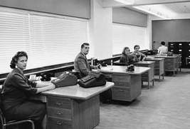 Mynd er sýnir afgreiðslu Brunabótafélagsins árið 1960. |