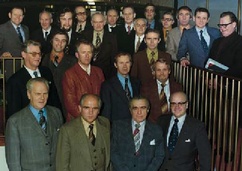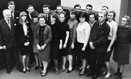 Mynd tekin af starfsfólki aðalskrifstofu Brunabótafélagsins á 50 ára afmæli félagsins árið 1967. |