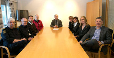 Á myndinni frá vinstri: Kristján Einarsson Félagi slökkviliðsstjóra, Bjarni Kjartansson SHS, Methúsalem Hilmarsson TM, Jón Svanberg Hjartarson Landsbjörg, Björn Karlsson Mannvirkjastofnun, Anna Sigurðardóttir EBÍ, Auður Daníelsdóttir Sjóvá, Auður Björk Guðmundsdóttir VÍS og Guðmundur Jóhann Jónsson Verði.